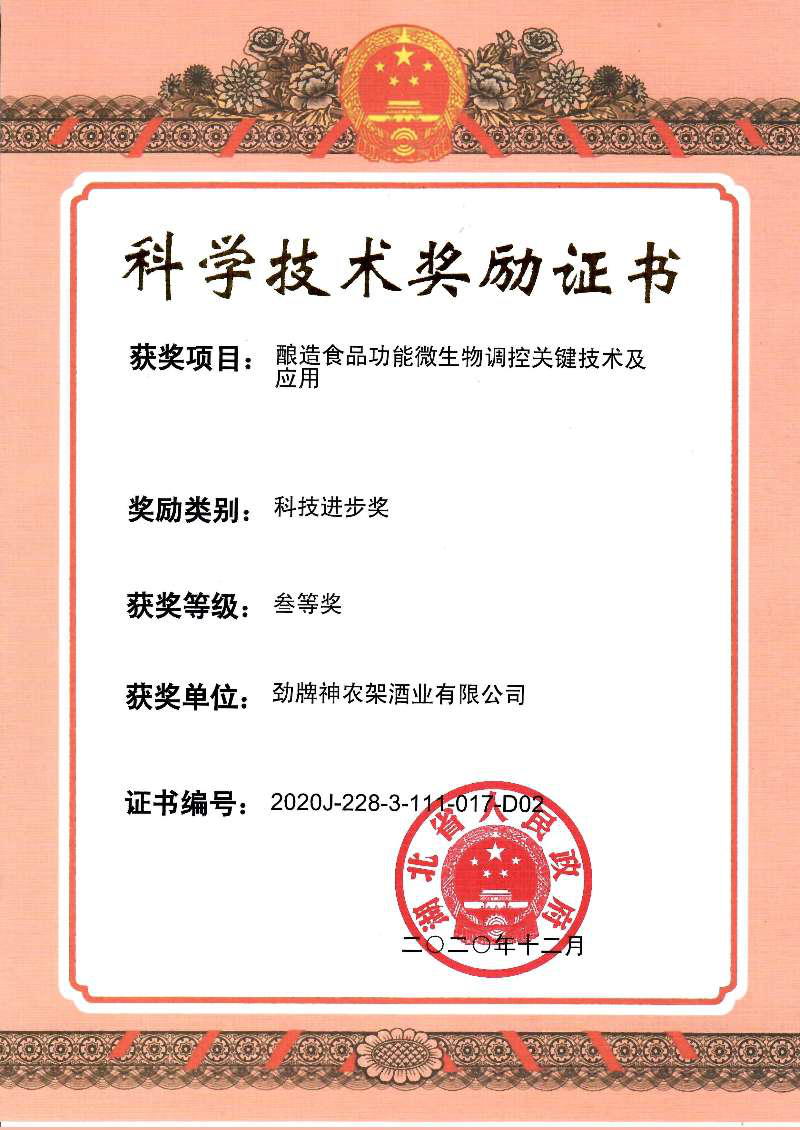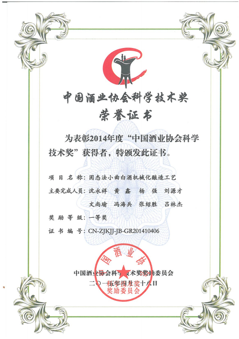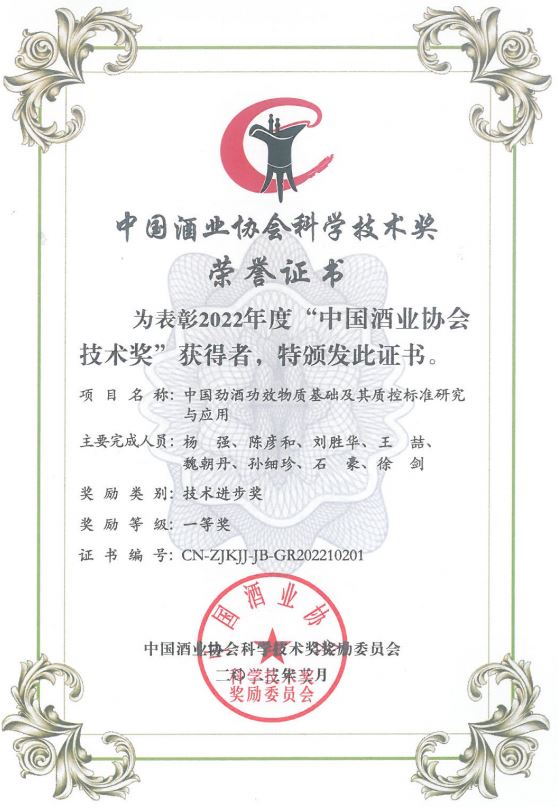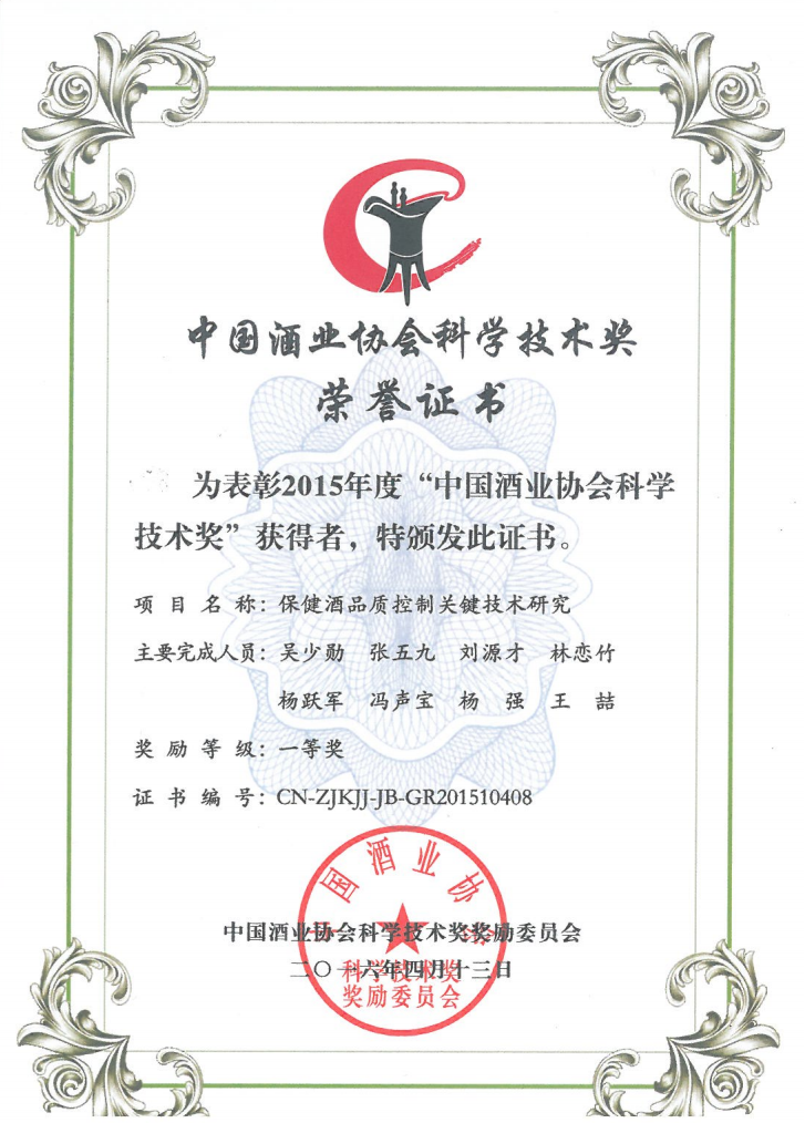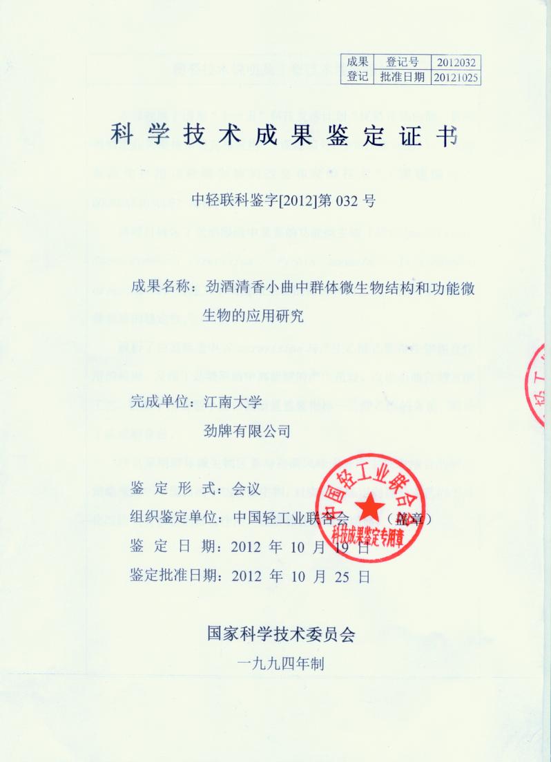 近年來,公司圍繞保健酒、草本白酒和中草藥新產品研發、產品改進和基礎應用技術,在中藥數字化提取、小曲酒釀造新工藝、中藥指紋圖譜等核心技術方面擁有自主知識產權,通過行業協會等鑒定機構技術評估22項,其中15項成果鑒定為“國際領先”水平,7項成果鑒定為“國際先進”水平。