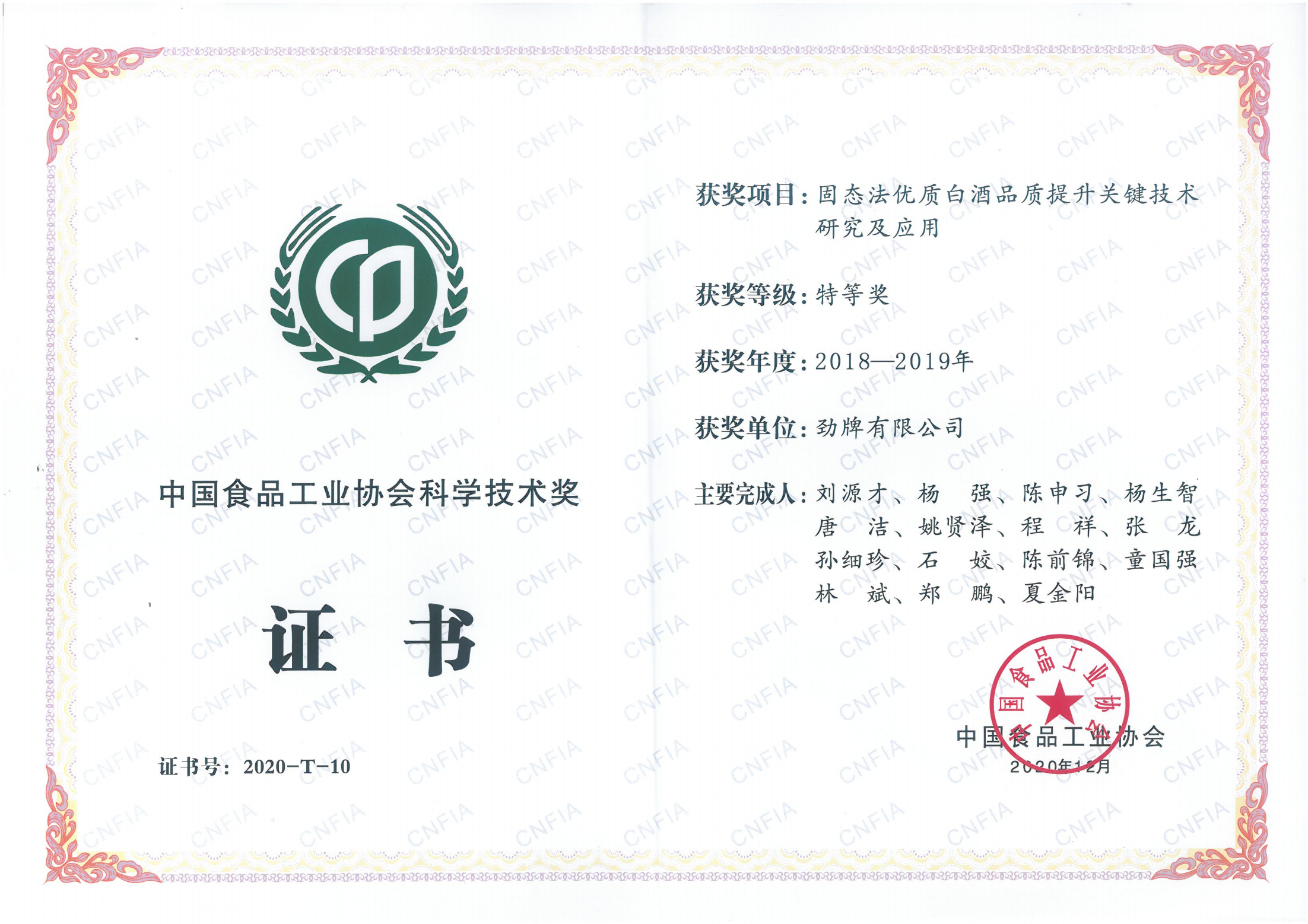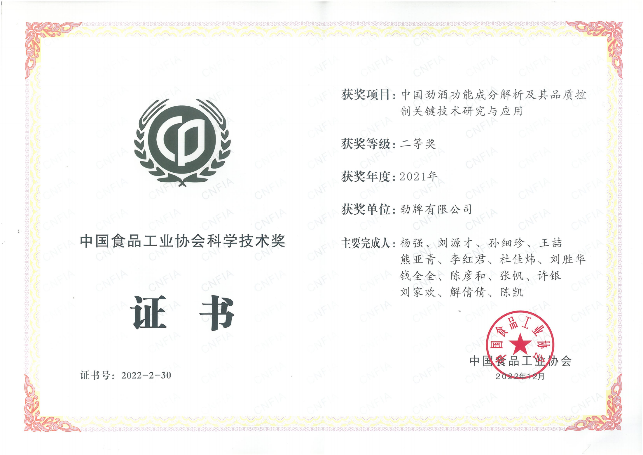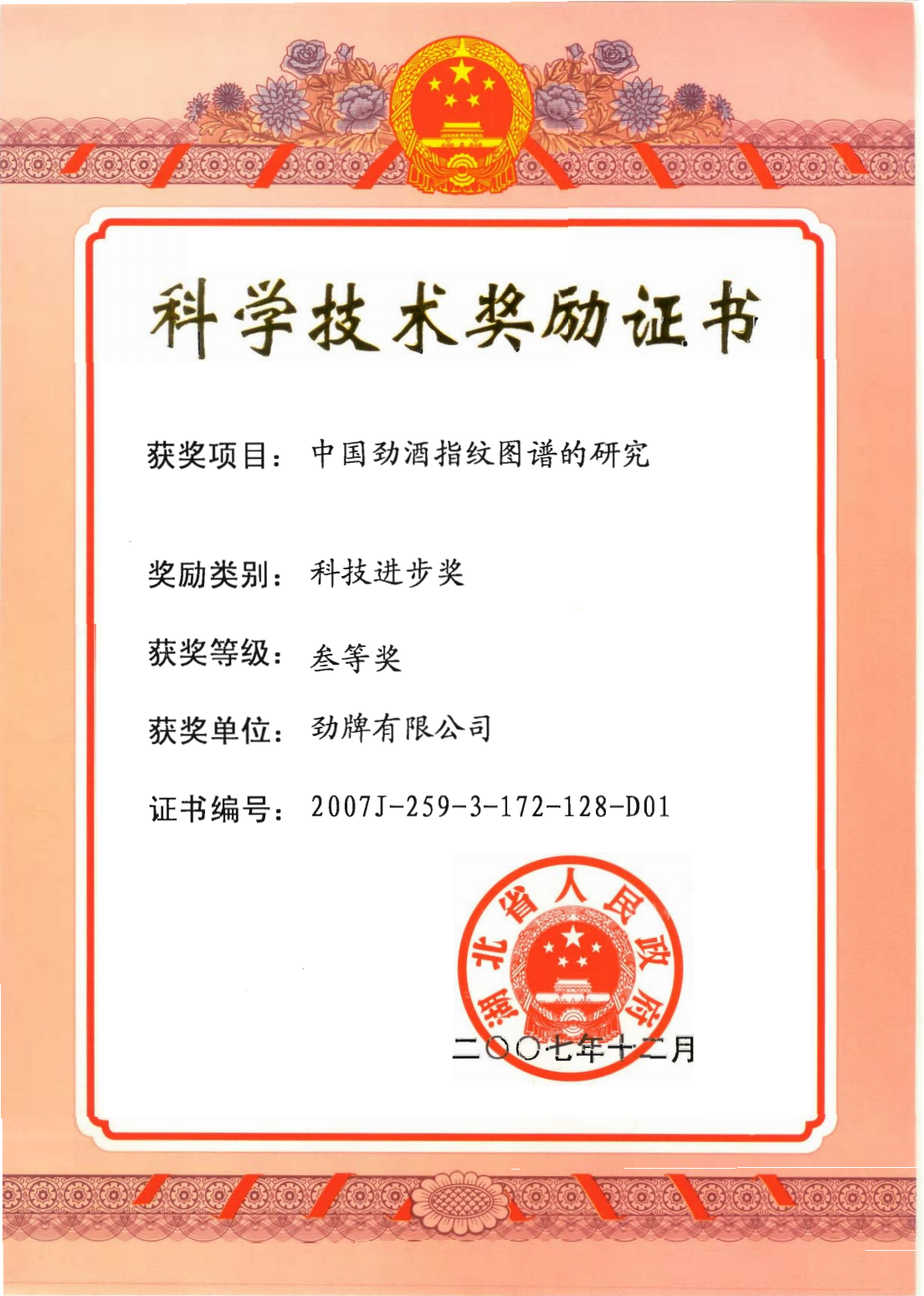 目前勁牌有限公司共獲得國家級、省級、行業級科技獎勵27項。其中國家級科技獎1項,省部級科技獎11項,行業級科技獎15項。