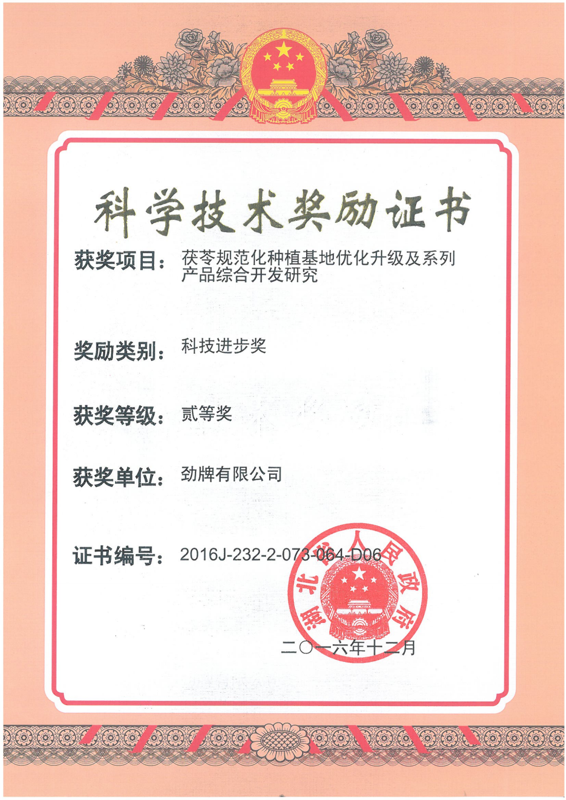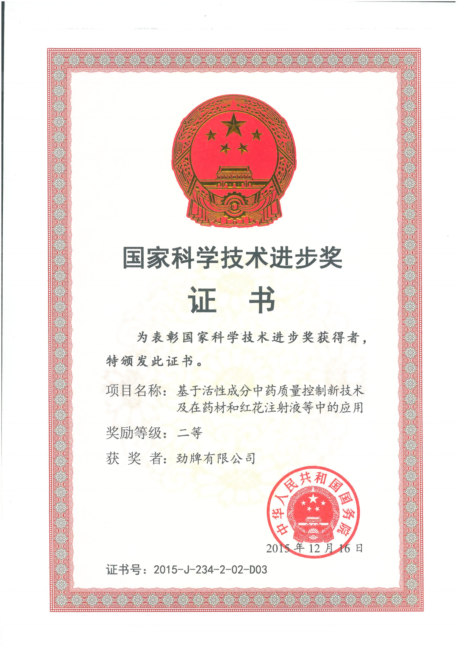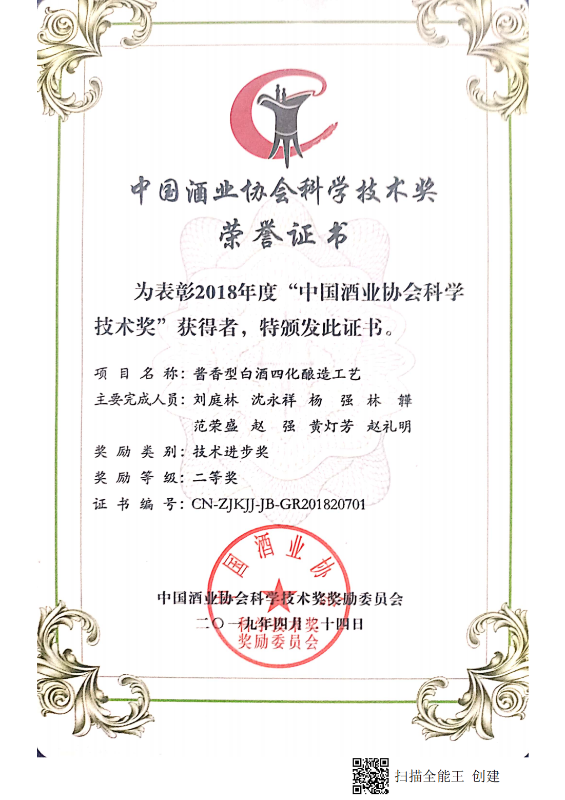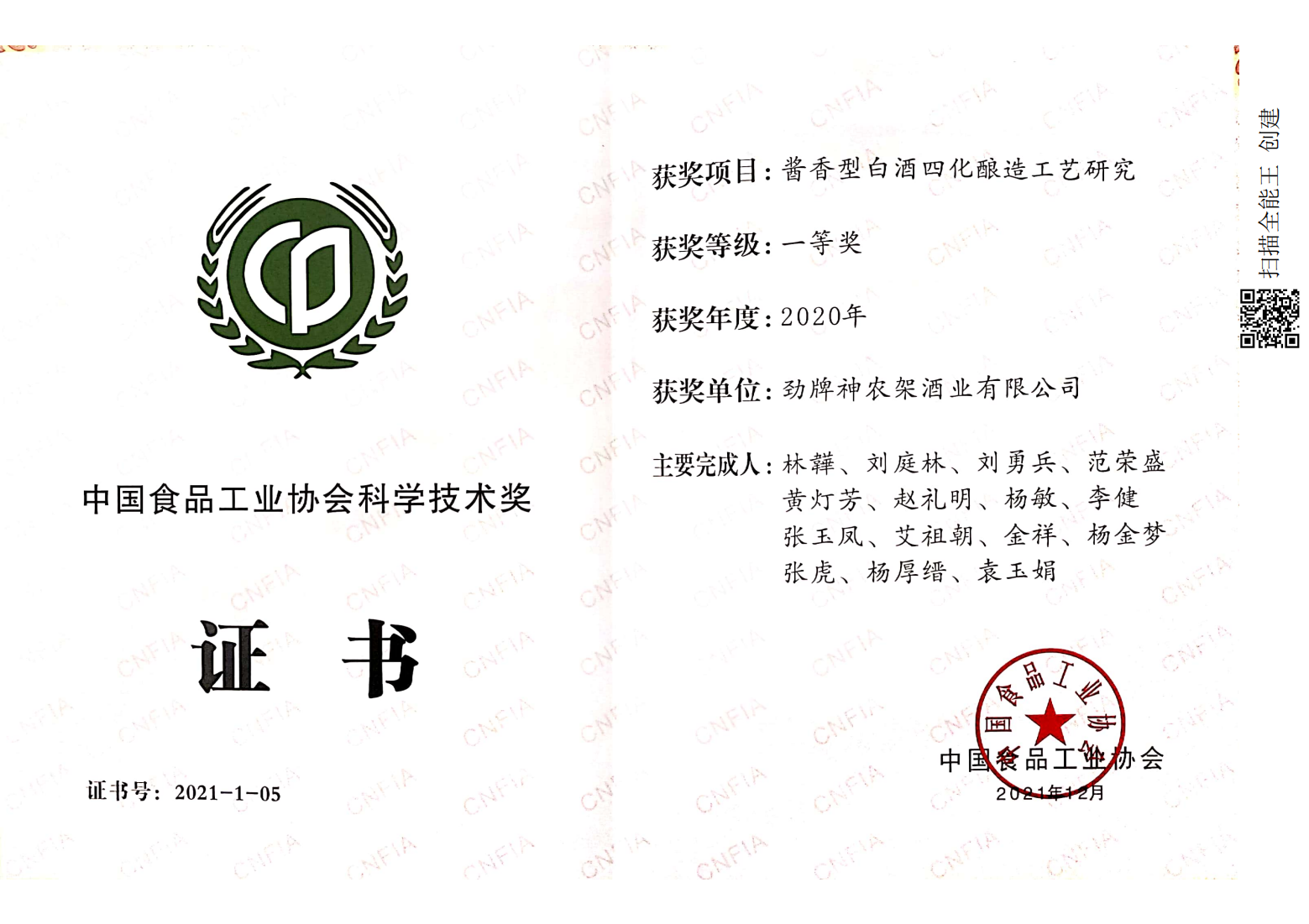 目前勁牌有限公司共獲得國家級、省級、行業級科技獎勵27項。其中國家級科技獎1項,省部級科技獎11項,行業級科技獎15項。